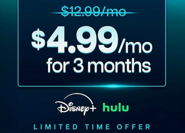 Limited Time Offer! Disney+, Hulu Bundle (With Ads) for just $4.99/month for the first 3 months.