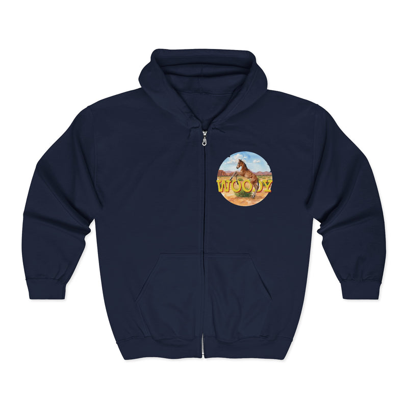 This zip-up hoodie from Katie Van Slyke features the foal Woody. Bring a piece of Running Springs with you every where you go! The classic comfy zip-up, featuring air-jet spun yarn for a softer fleece with reduced pilling. Once put on, it will be impossible to take off.